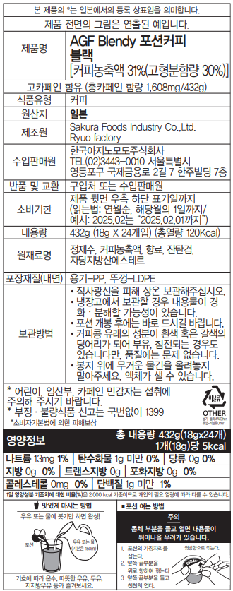 AGF Blendy 블렌디 포션커피 블랙 24개 액상커피