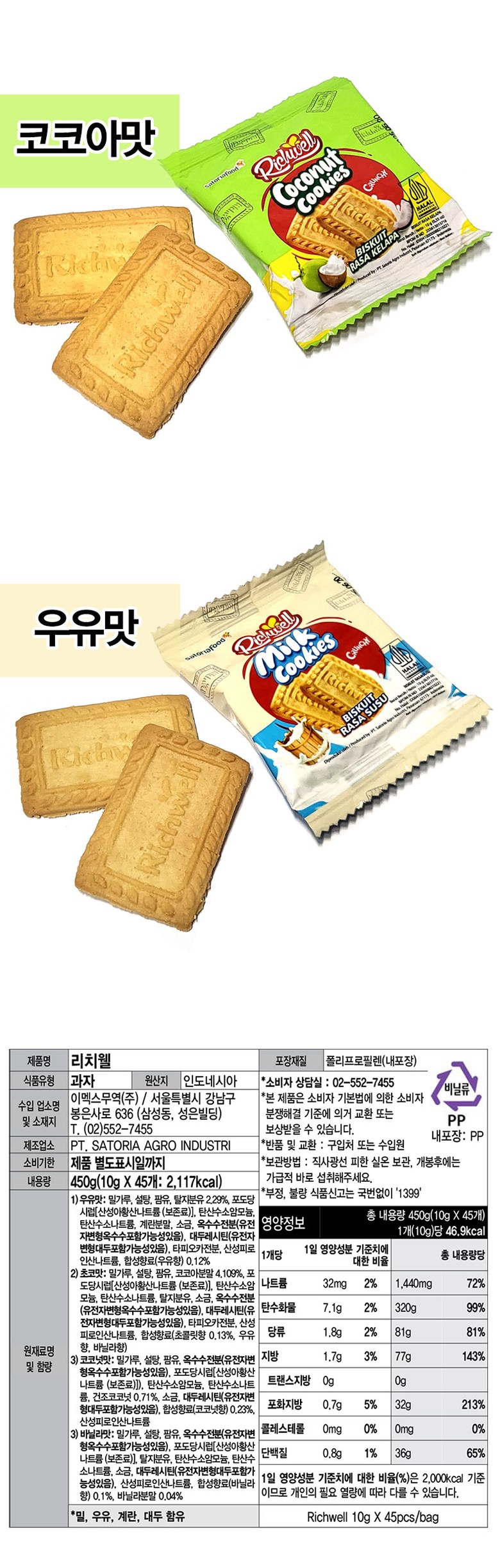 Richwell 리치웰 쿠키 4종 45개, 450g