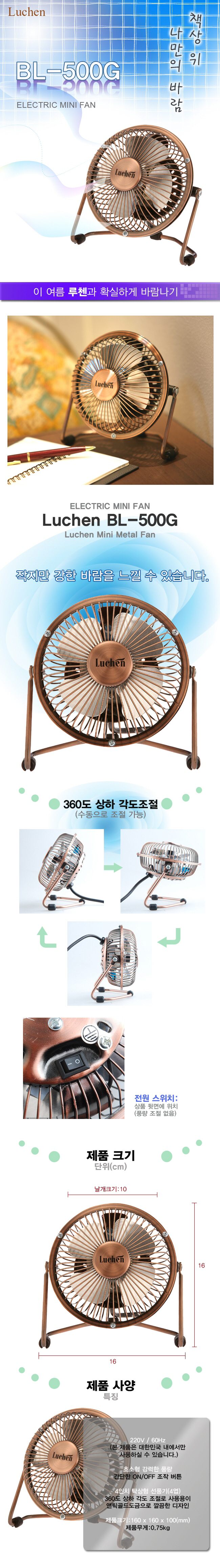 [작지만 강하다!]인테리어 루첸 4" 엔틱골드 크롬 4" 탁상형 미니 선풍기[BL-500G]