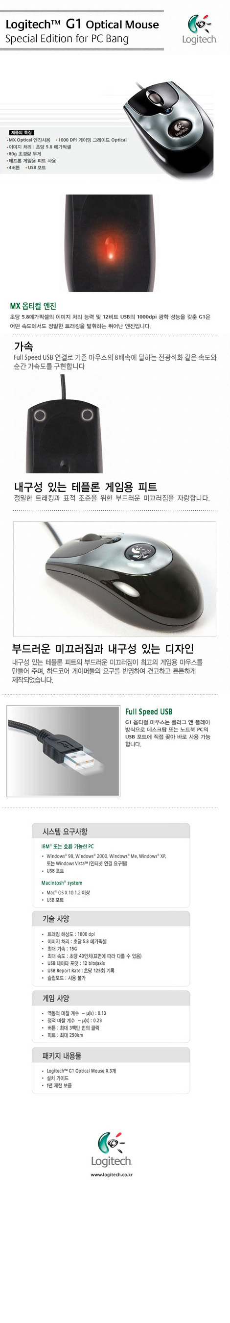 [로지텍] G1 옵티컬 마우스 그레이(1000DPI/USB)