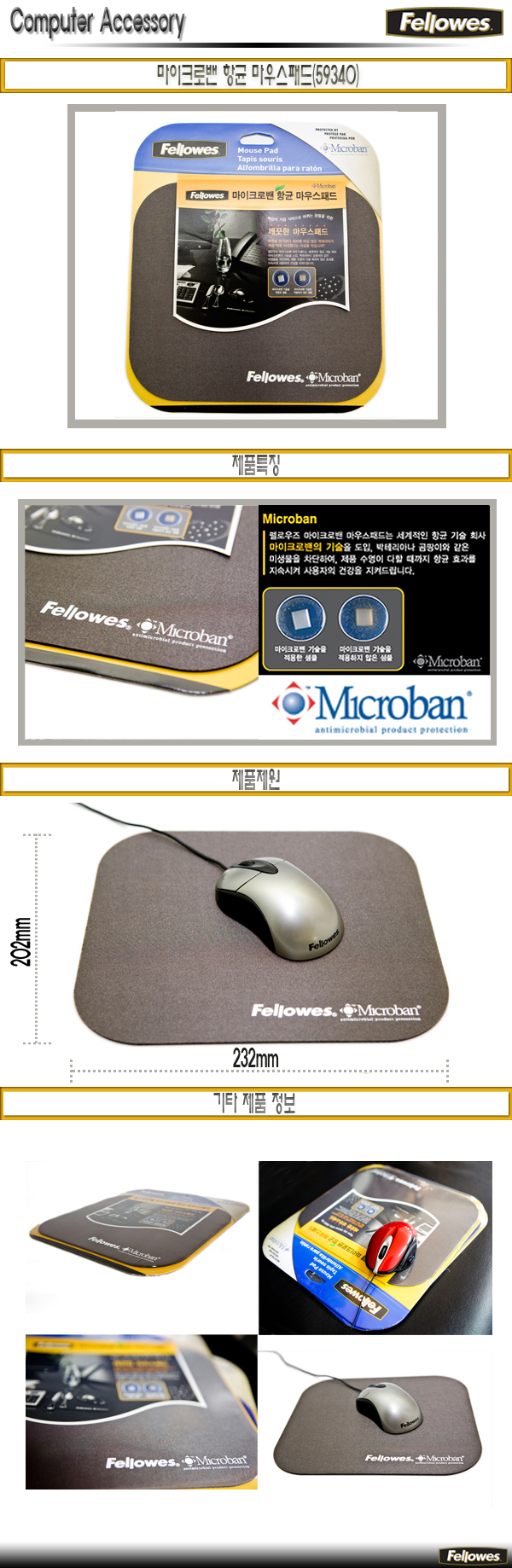 펠로우즈 마이크로밴 향균마우스패드(232*202*3.2mm) 실버 59340