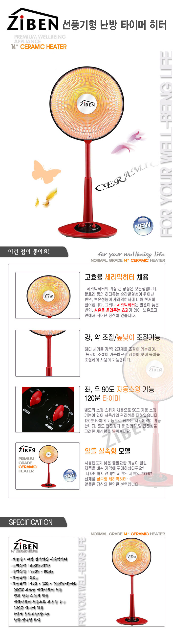 ★강력 고효율★좌우상하 조절★안전장치★ZiBEN 선풍기형 난방 타이머 히터[CT-2400C]