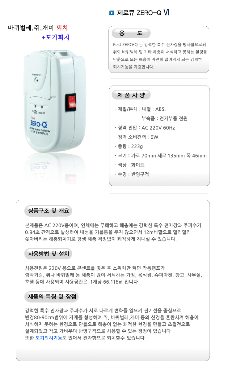 [개미,바퀴벌레,쥐,벌레 박멸!]제로큐 최고급형 초음파+모기훈증 해충퇴치기[Q-6]