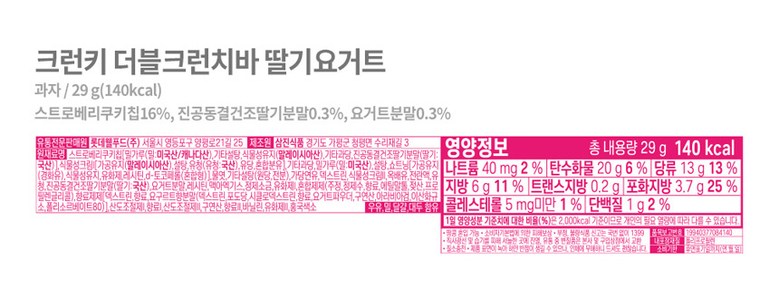 롯데 딸기, 디저트에 퐁당 크런키 더블크런치바 29g x 10개(박스)