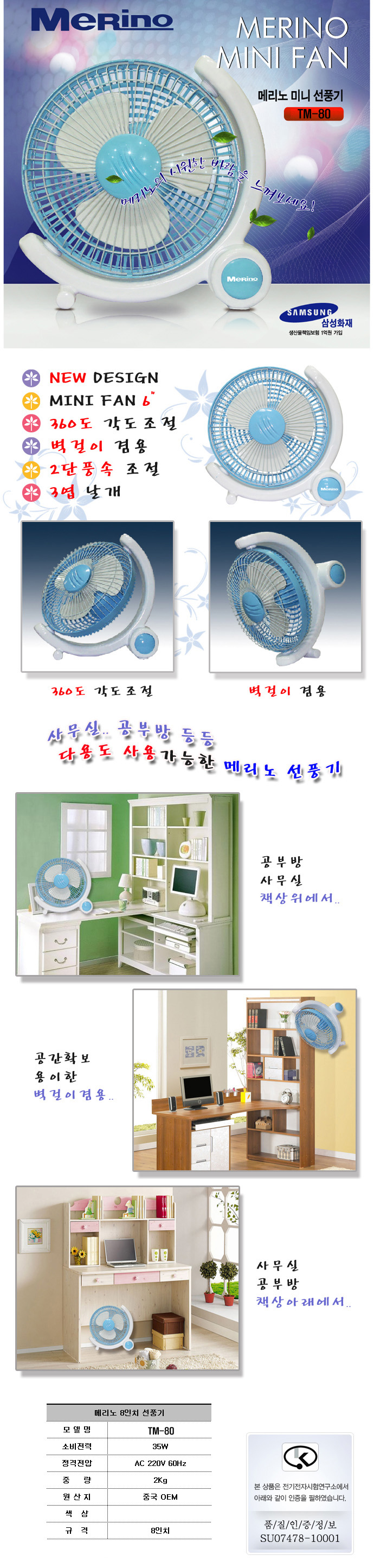 Simple 메리노 360도각도조절 7형 탁상용/벽걸이 겸용 미니 선풍기[TM-80]