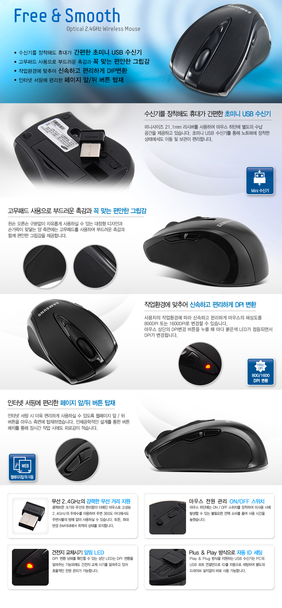 [삼성전자] SMO-3300B 무선마우스 블랙(1600dpi/USB)