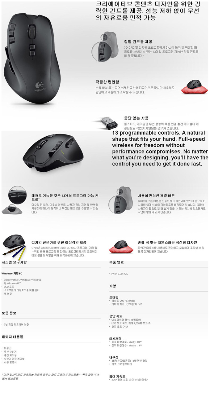 [로지텍] G700 유/무선 게이밍 레이저 마우스(5700dpi/USB)