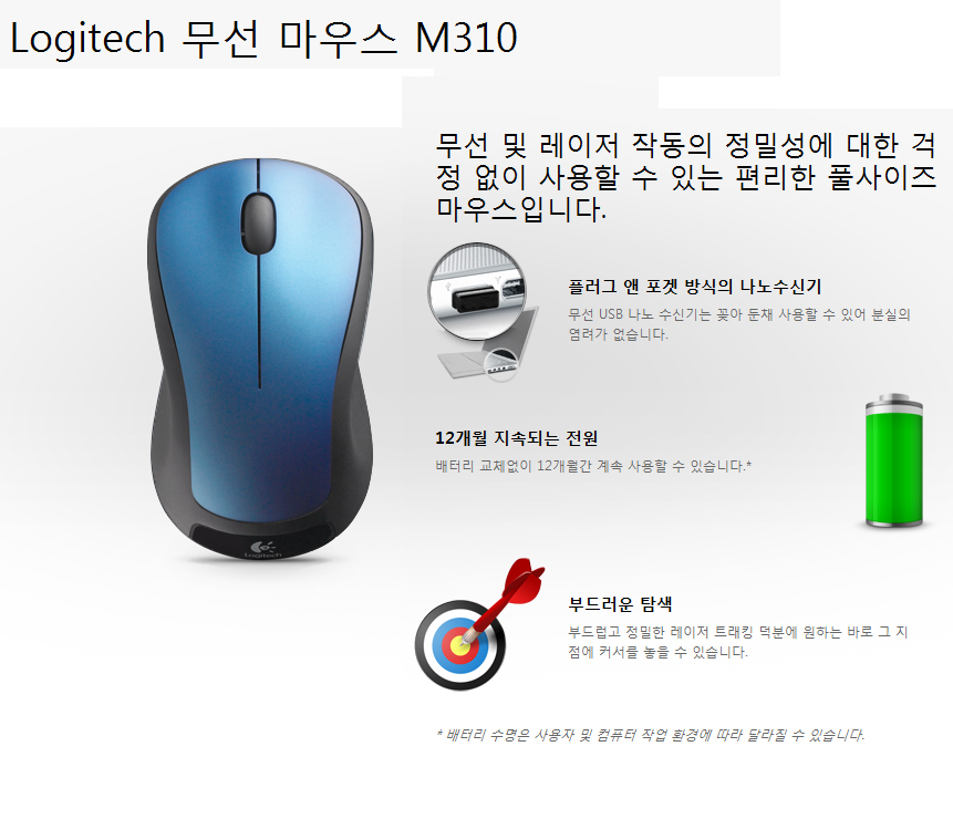 [로지텍] M310 무선 레이저 마우스 블루(1000dpi/USB)