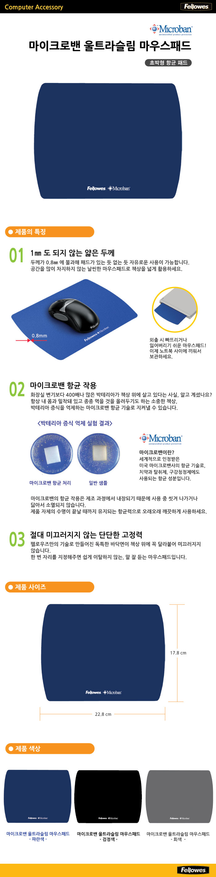 펠로우즈 마이크로밴 울트라슬림 마우스패드(228*178*0.8mm) 파랑 59080