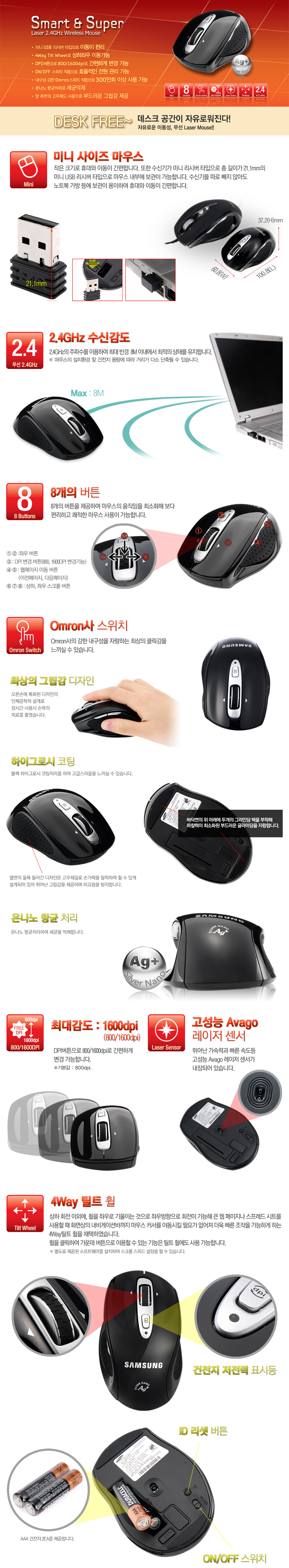 [삼성전자] SRM-3100B 무선마우스 블랙(1600dpi/USB)