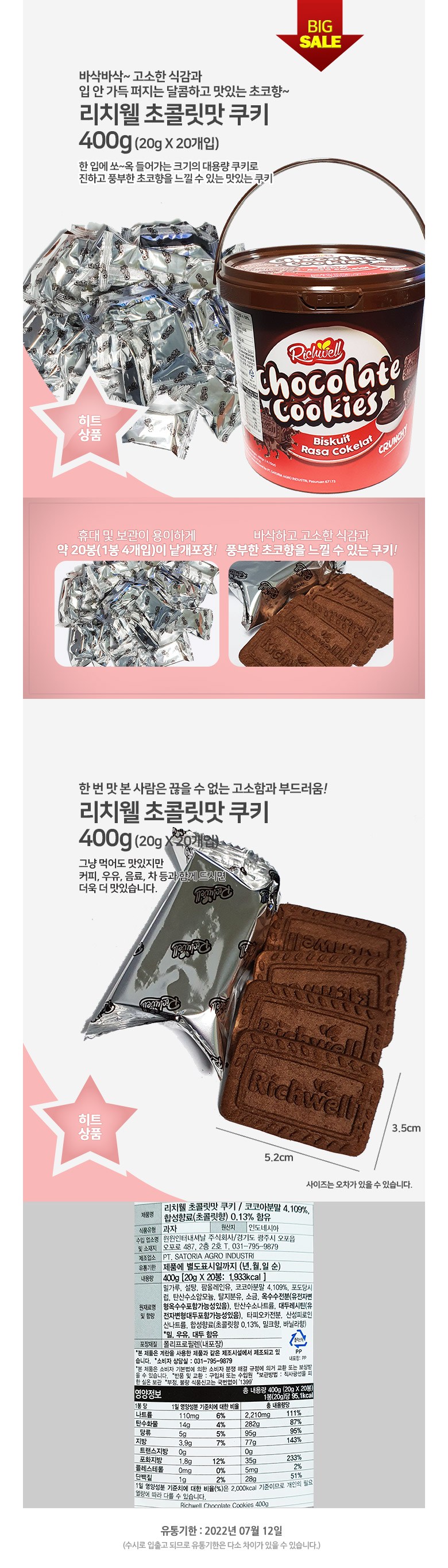 Richwell 리치웰 초콜릿맛 쿠키 400g
