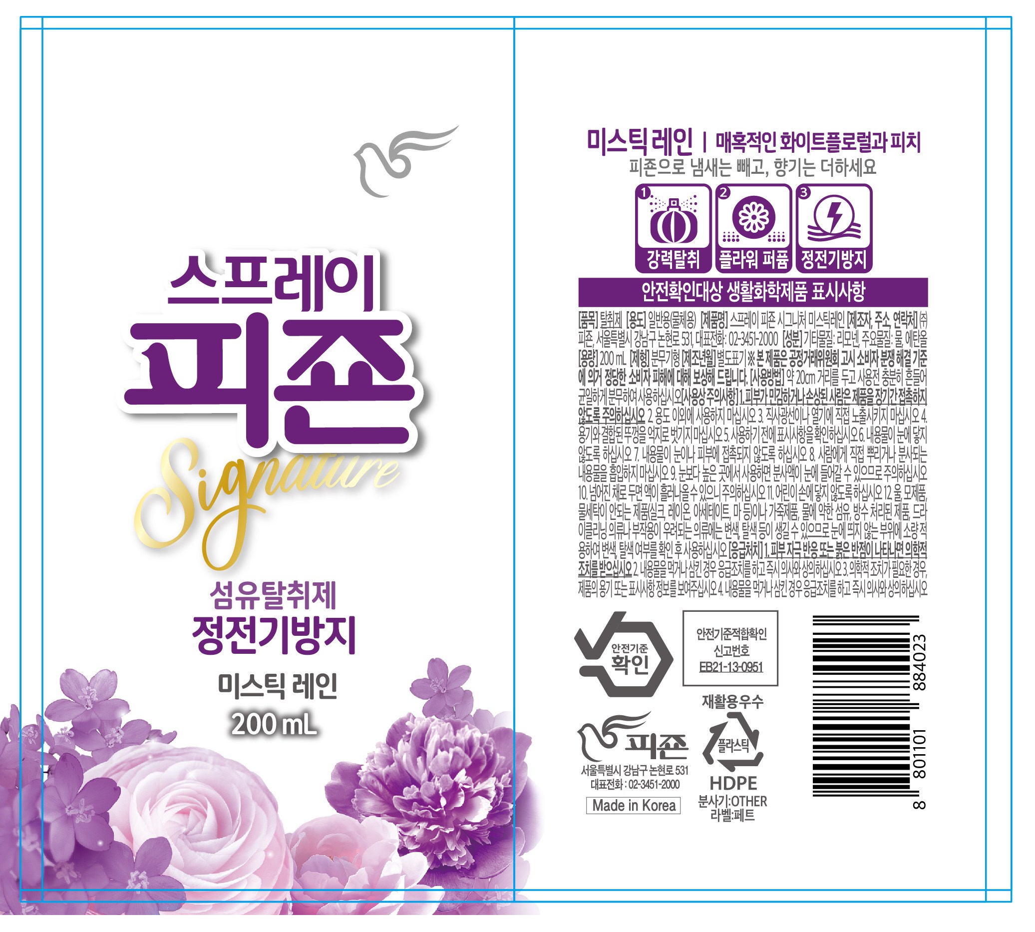 스프레이 피죤 리치퍼퓸 섬유탈취제 미스틱 레인 200ml