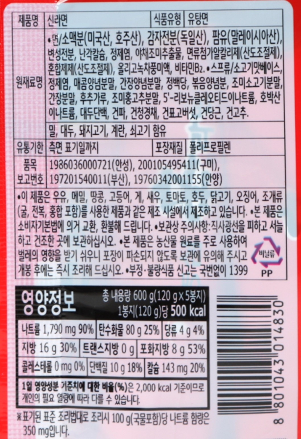 농심 신라면 봉지 120g x 5입