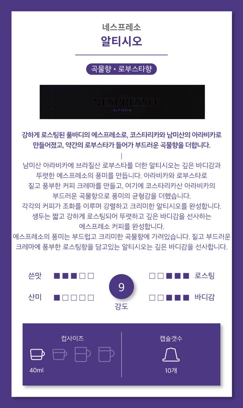 NESPRESSO 네스프레소 버츄오 캡슐커피 [알티시오] 10개입