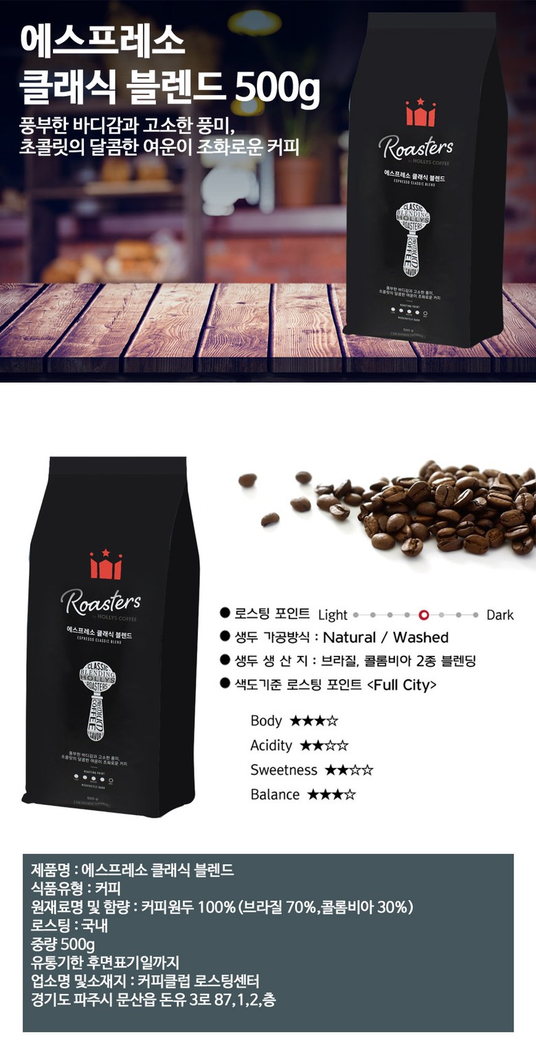 HOLLYS 할리스 에스프레소 클래식 블렌드 홀빈 500g