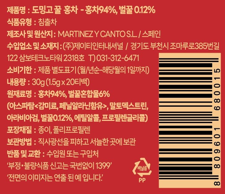 DOMINGO 도밍고 꿀홍차 1.5g x 20T