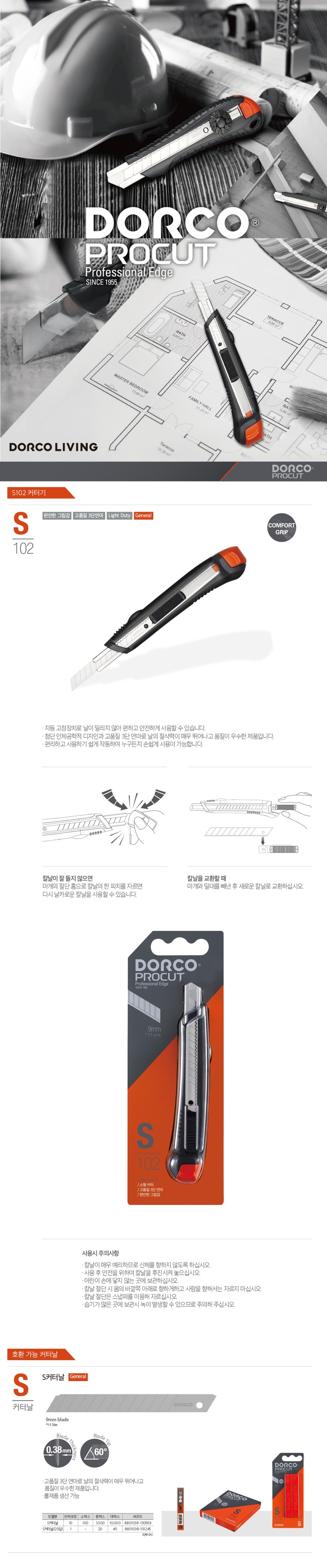 [커터칼-소형] 도루코 사무용 커터칼 소형 S102