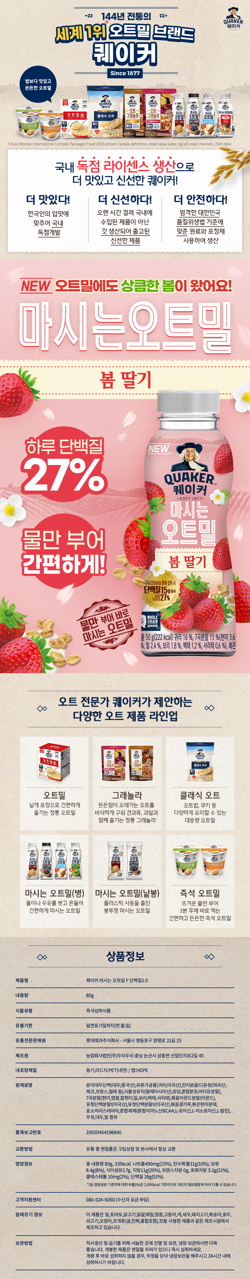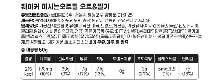 퀘이커 마시는 오트밀 오트 & 딸기 20병 / 식사대용