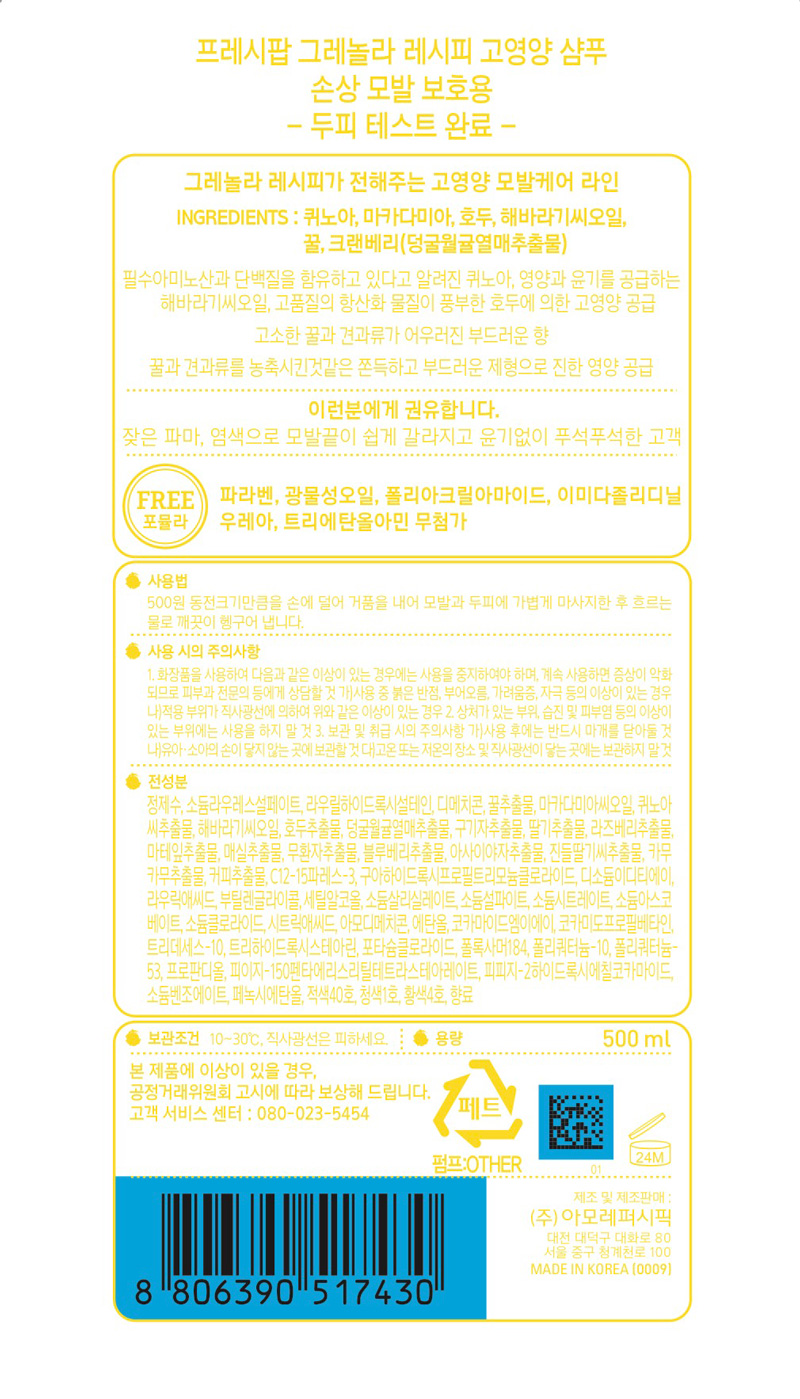 프레시팝 그래놀라 레시피 샴푸 500ml