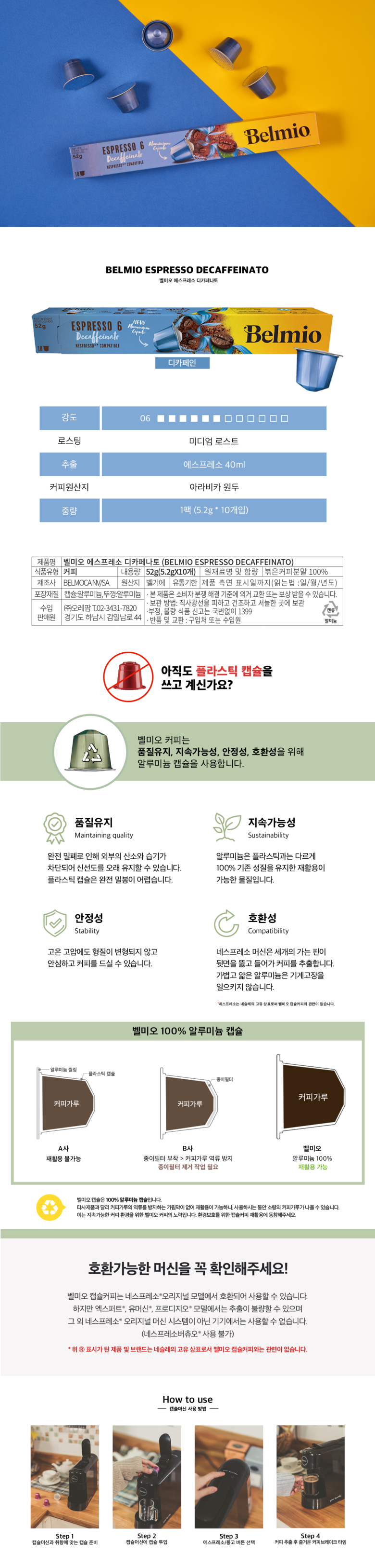벨미오 에스프레소 디카페나토 네스프레소 호환 캡슐커피 10개입