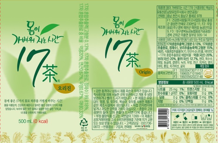 남양 몸이 가벼워지는 17차 500ml x 20개