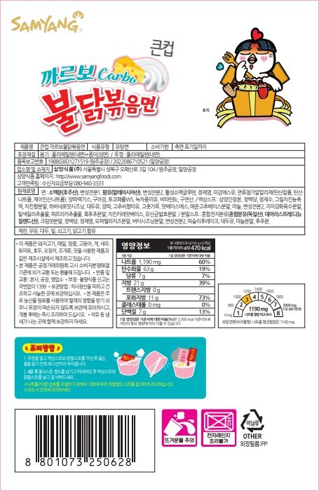 삼양 까르보불닭볶음면 큰컵 大 105*6개입 (대용량)