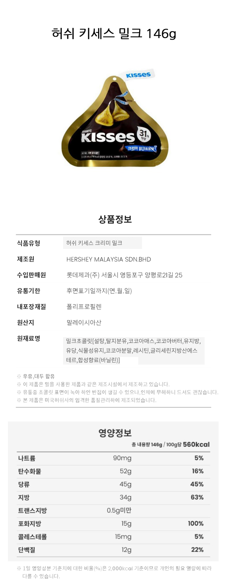 6300 롯데 허쉬 키세스 아이코닉 크리미 밀크초콜릿 146g