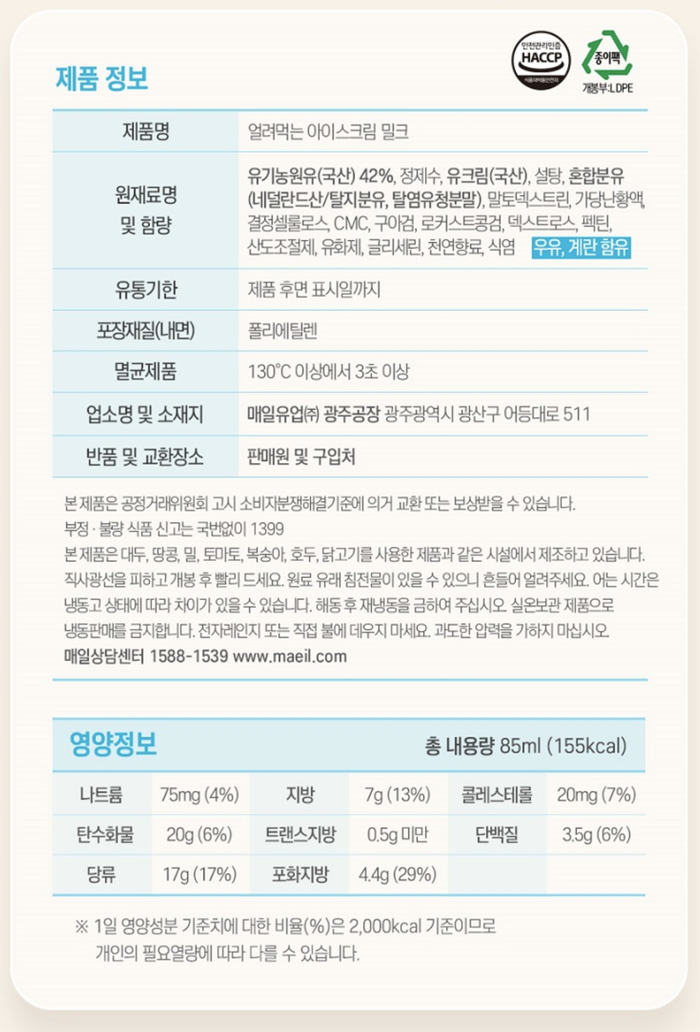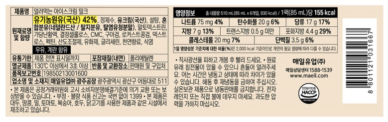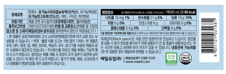 매일 상하목장 얼려먹는 아이스주스 망고 85ml*6개입
