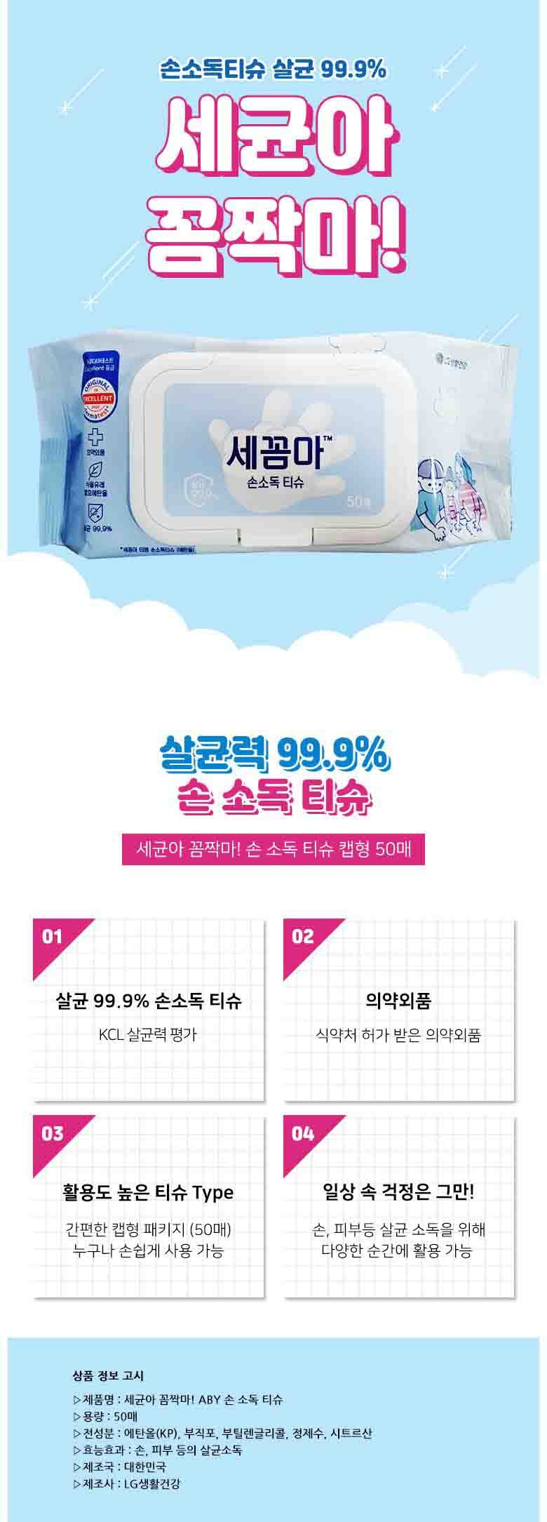 LG생활건강 세균아 꼼짝마 손소독 티슈 50매