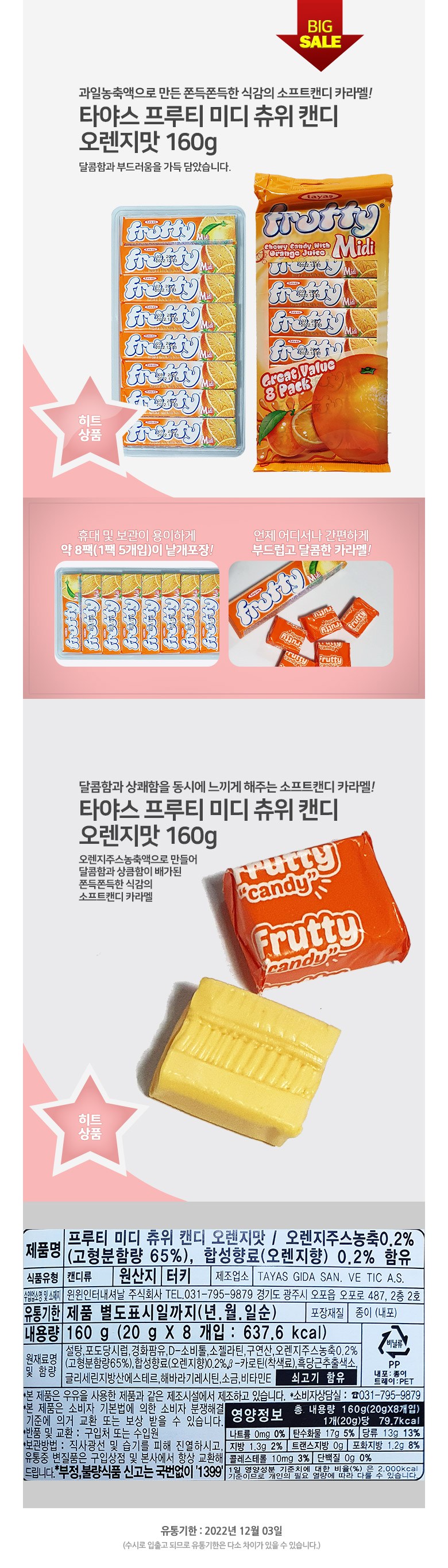 tayas frutty Midi 타야스 프루티 미디 캔디 오랜지맛 160g