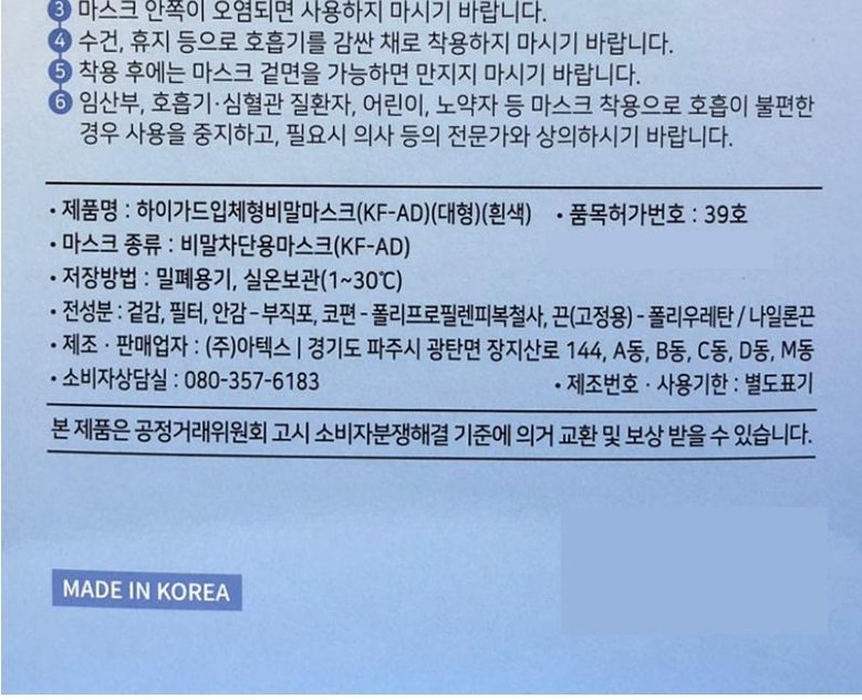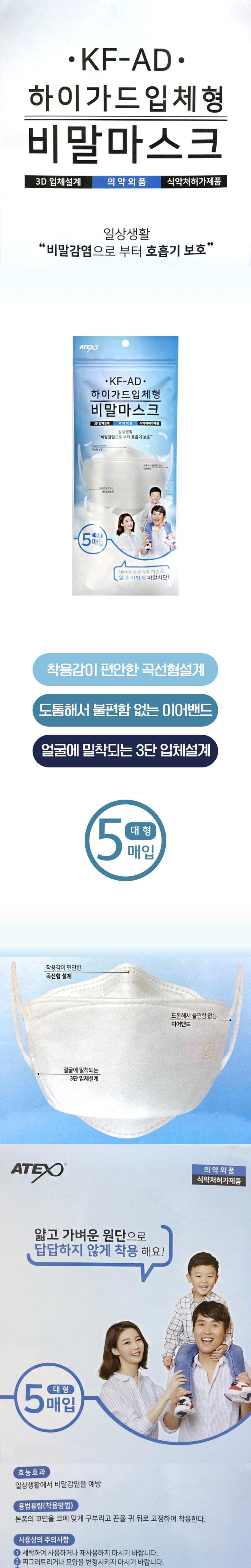 KF-AD 입체형 아텍스 하이가드 비말마스크 대형(5매입 x 10개)