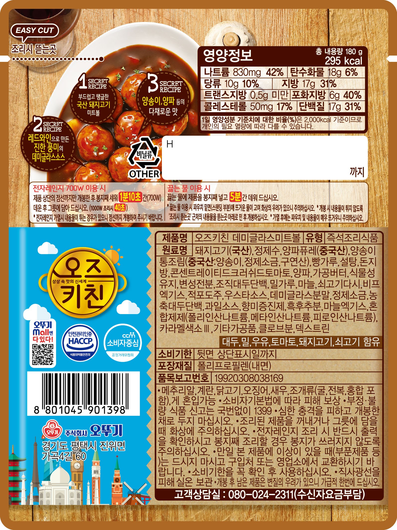 오뚜기 오즈키친 데미글라스 미트볼 180g, 전자렌지에 바로~