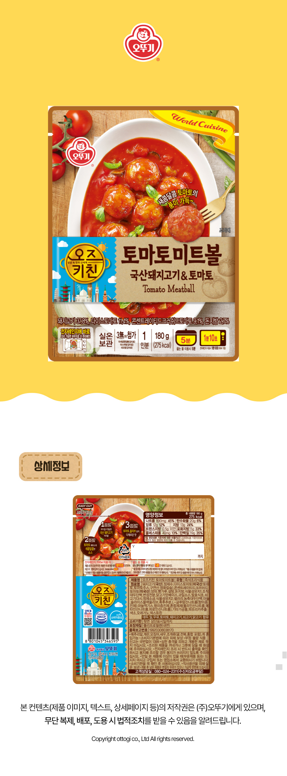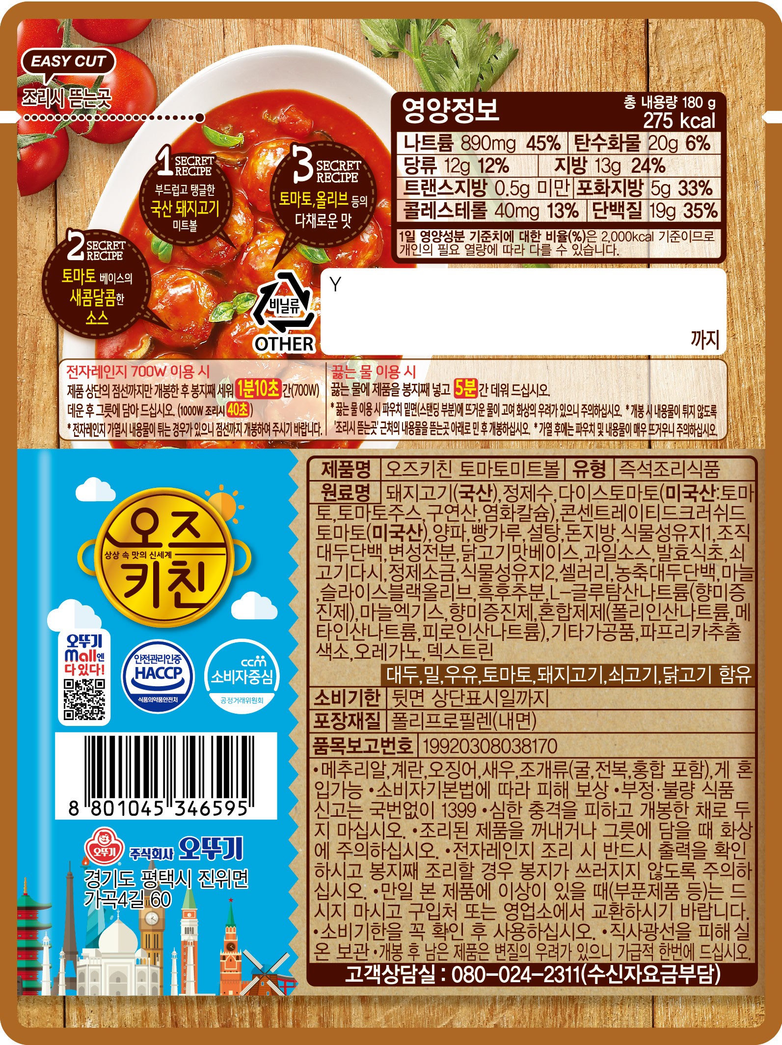 오뚜기 오즈키친 토마토 미트볼 180g, 전자렌지에 바로~