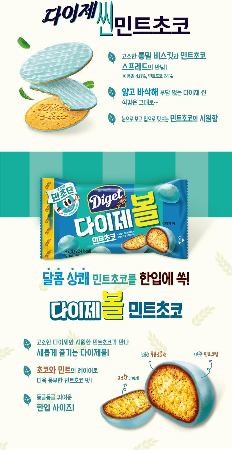 오리온 민초단 다이제 씬 민트초코 30g x 9봉지