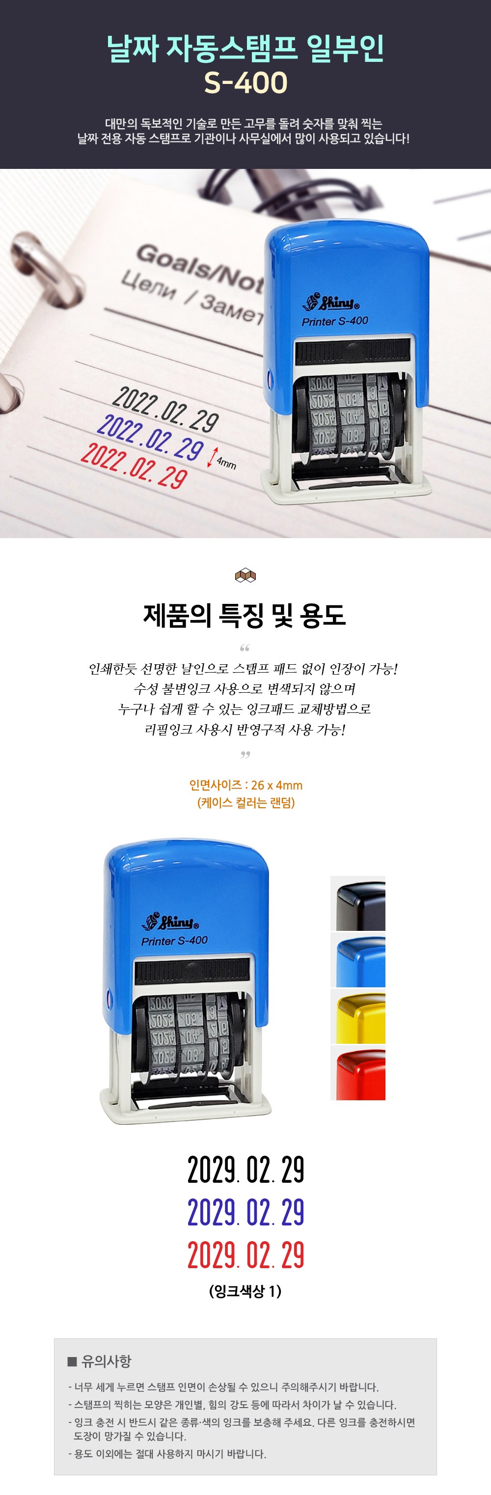 샤이니 날짜 자동 스탬프 일부인 S-400 먹색(검정)