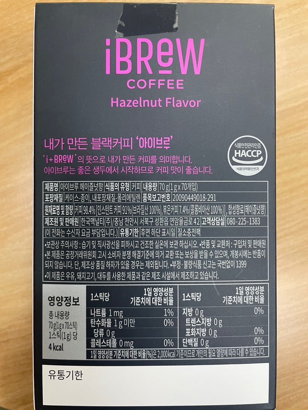 맥널티 아이브루 헤이즐넛향 블랙 커피믹스 70개입