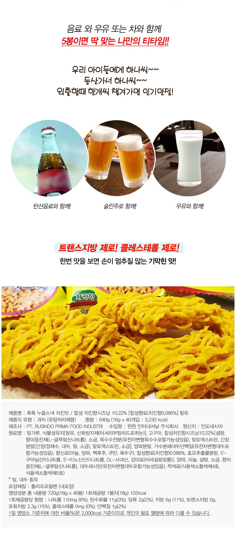 폭폭누들스낵 치킨맛 40봉 720g