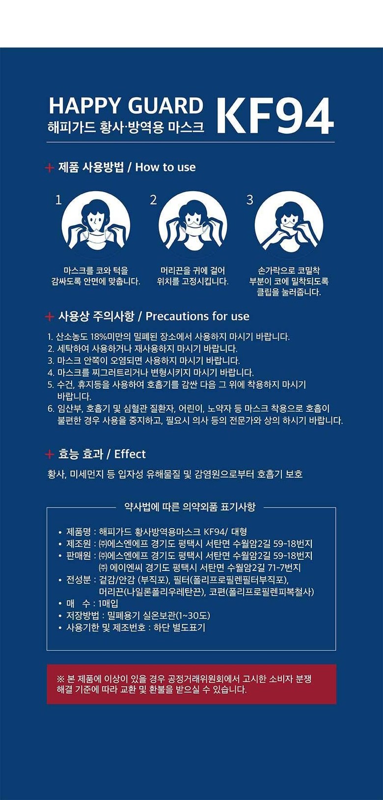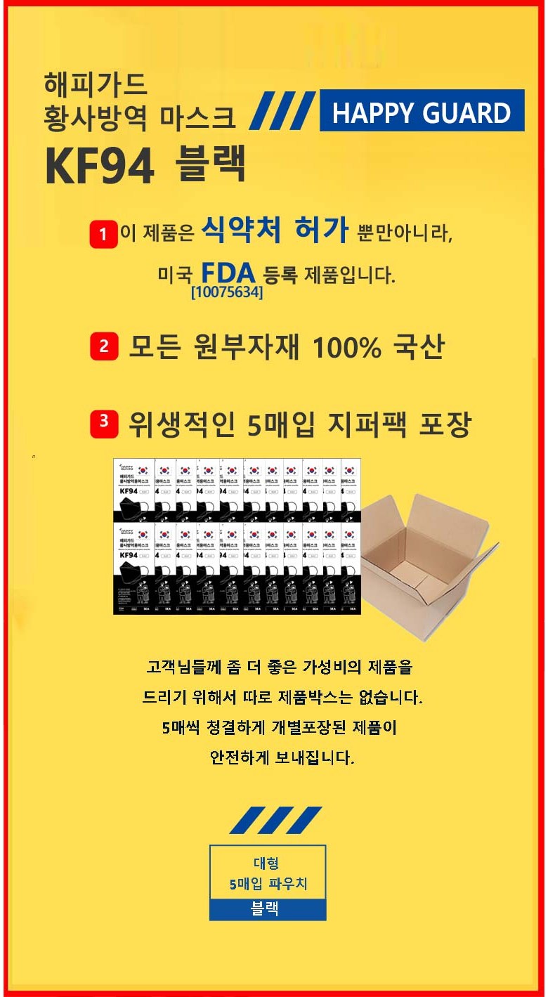 HAPPY GUARD 해피가드 황사 방역용마스크 KF94 블랙 10매입
