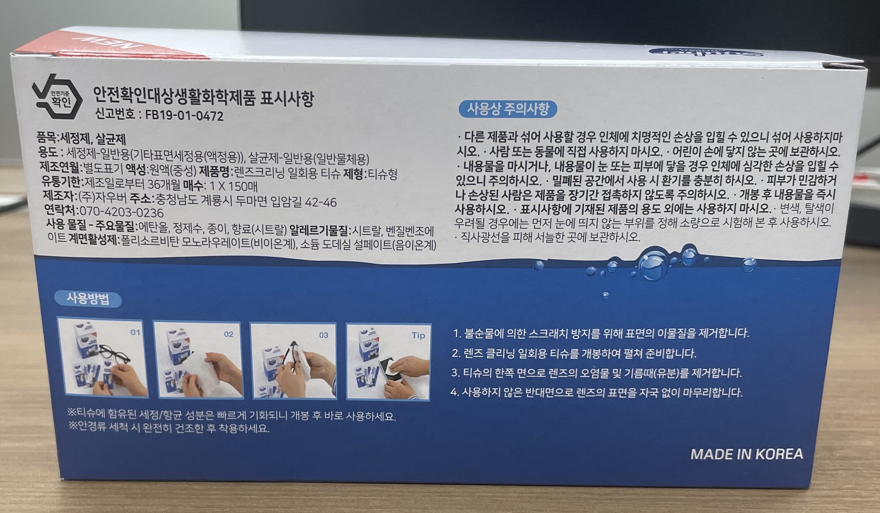 자우버 렌즈 안경 크리닝 일회용 티슈 150매