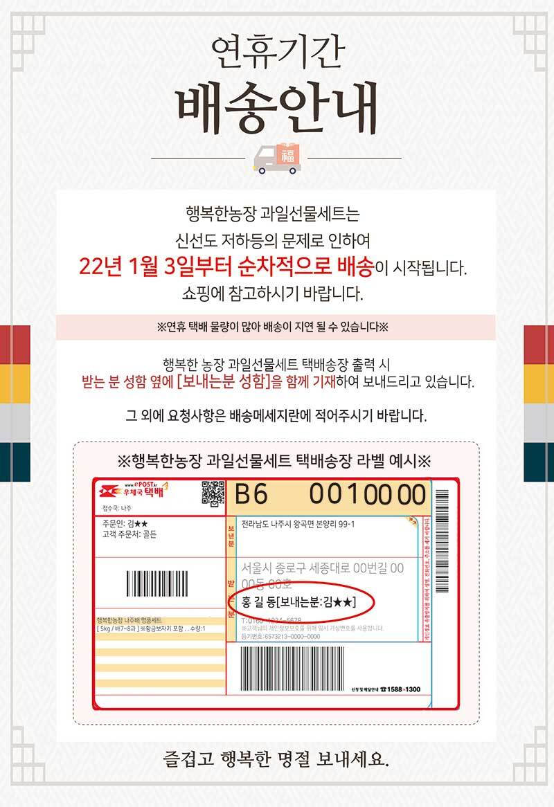 행복한농장 배사과 혼합 정성세트 (4.8kg 배5 사과5)