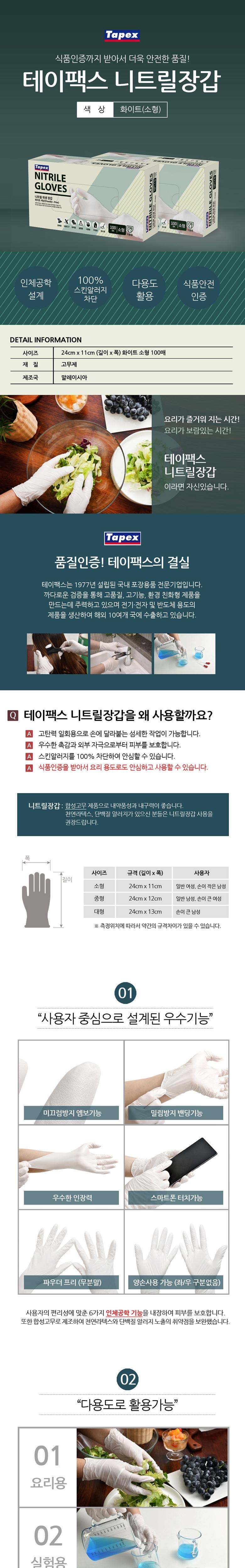 테이팩스 니트릴장갑 화이트 100매 (소형)