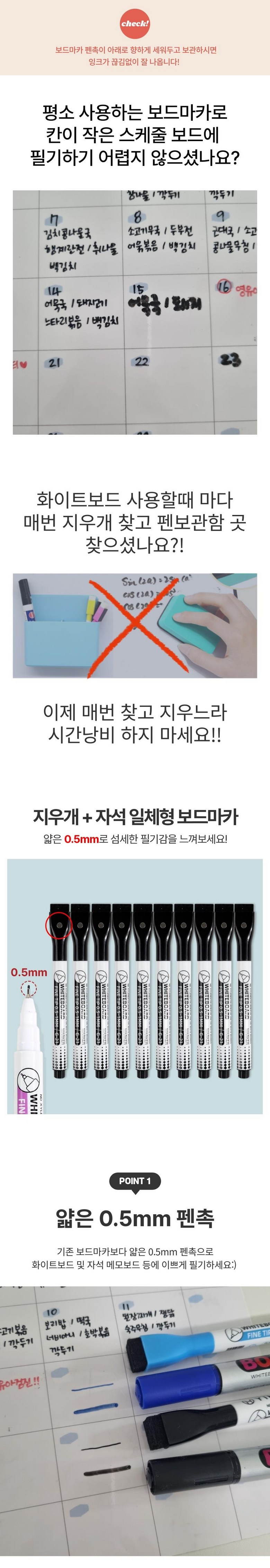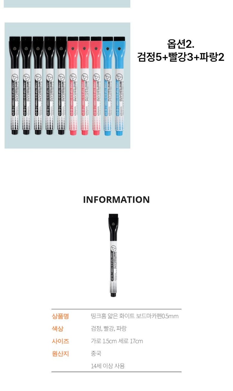 띵크홈 얇은 화이트 보드마카펜 0.5mm 3색