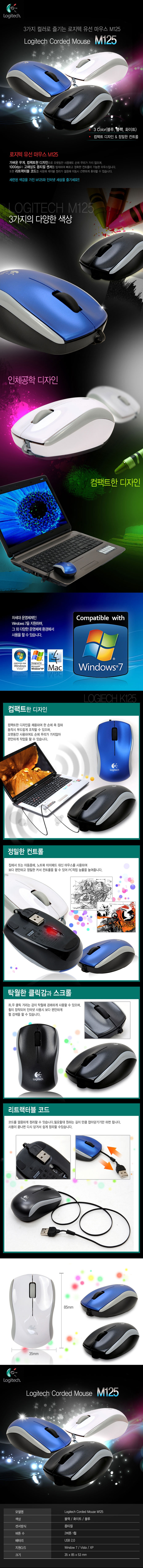 [로지텍] M125 블루 마우스(1000dpi/USB)