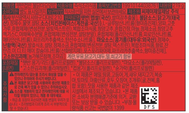 CJ 햇반 컵반 불닭마요덮밥 219g