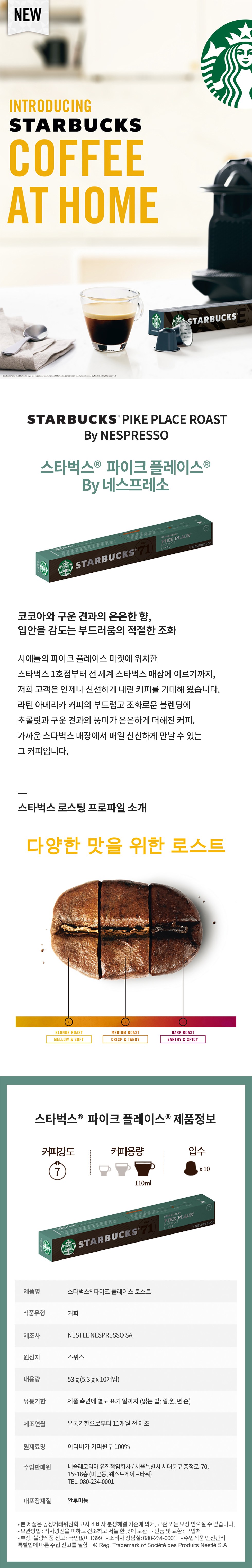 네스프레소 스타벅스 캡슐커피 파이크 플레이스 (No.7) 10개