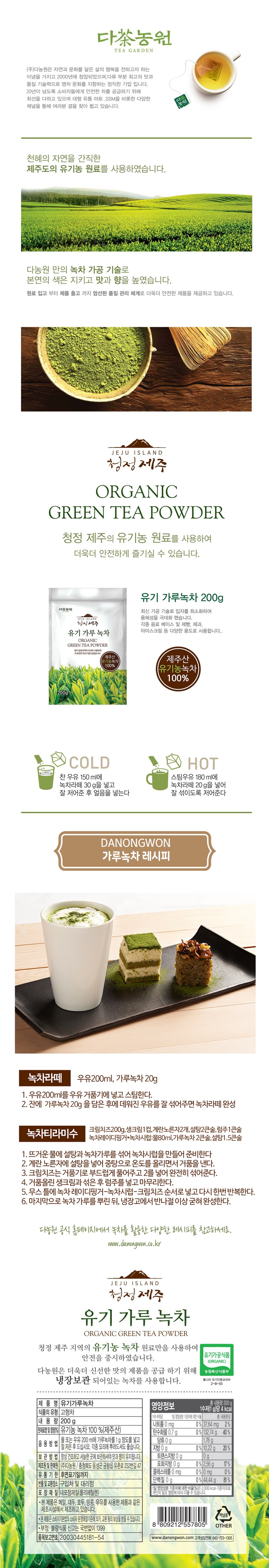 다농원 청정제주 유기가루녹차200g