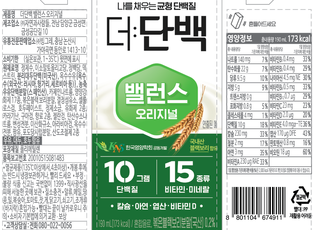 빙그레 더단백 밸런스 오리지널 190ml x 6개