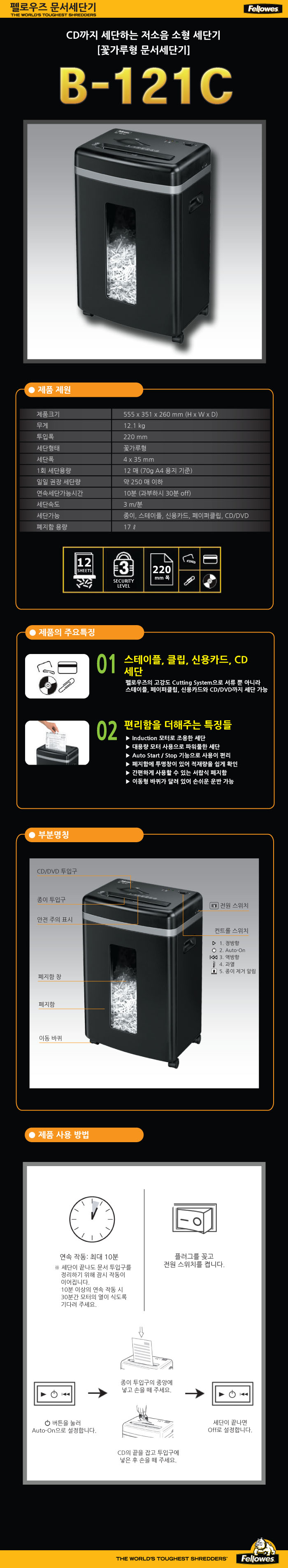 펠로우즈 문서세단기 B-121C(꽃가루형/17L)