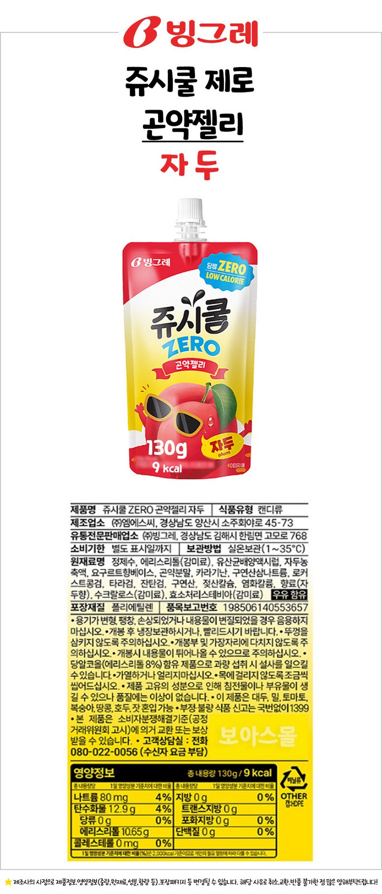 빙그레 쥬시쿨 제로 곤약젤리 자두 130g x 10개