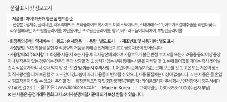 (대용량)아이깨끗해 핸드워시 상큼한 레몬향 490ml
